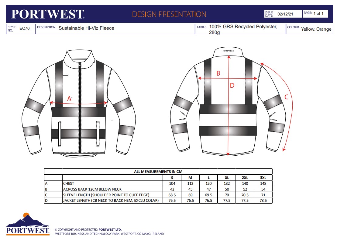 Portwest EC70 Eco Hi-Vis Fleece EC70